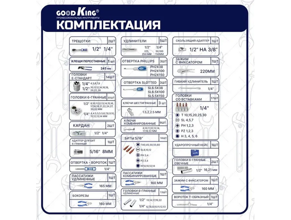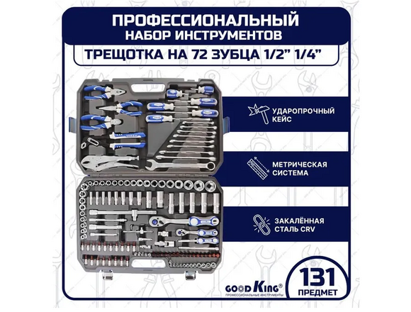 Набор головок и инструмента GOODKING 131пр 1/2 1/4 +голов/биты/ключи/шги/отвер