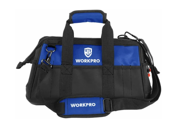 Сумка для инструмента WORKPRO 640D 420x230x270 мм, с широким горлом, на молнии, с пластиковым дном WP281007 используется для хранения и транспортировки инструмента. Широкое горло сумки обеспечивает быстрый доступ к инструменту и удобство наполнения. Сумка выполнена из качественного полиэстера 640D, устойчивого к истиранию и влаге. Прочное дно препятствует деформации сумки под тяжестью содержимого. Различные карманы служат для хранения ключей, плоскогубцев, отверток и аксессуаров. Наружный боковой сетчатый карман позволяет разместить необходимые аксессуары для быстрого к ним доступа. Регулируемый ремень обеспечивает комфортное ношение.