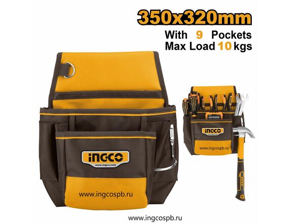 Сумка поясная INGCO 350*320мм, 9карманов + 2 захвата (5/20)