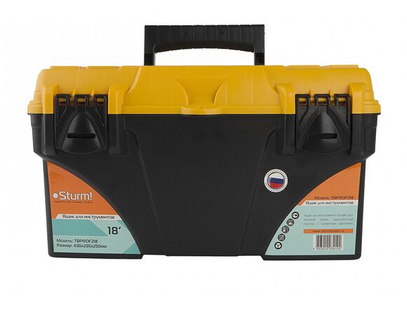 Ящик для инструментов 18 Prof Sturm TBPROF218 находит применение среди мастеров и слесарей. Хорошая вместимость и наличие удобной рукоятки значительно упрощают использование инструмента.