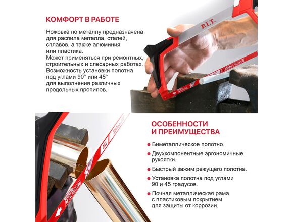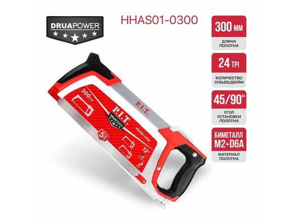 Ножовка по металлу P.I.T. 300мм 700г серия DRUA полотно BiM, 24 TPI, 90/45*, БЗП(5/20)