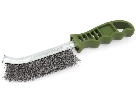 Щётка с пластиковой рукояткой, стальная щетина Дело Техники 270211 подойдет для удаления загрязнений с металлических поверхностей. Инструмент справится с: