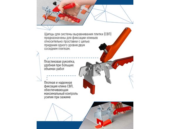 Щипцы для СВП VERTEXTOOLS - это клещи для системы выравнивания плитки, необходимы для быстрой и надежной фиксации клина в отверстии основания. Работы можно проводить как на полу, так и на стене.