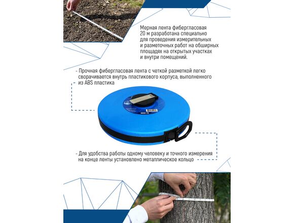 Прочная фибергласовая лента с четкой разметкой легко сворачивается внутрь пластикового корпуса, выполненного из ABS пластика.