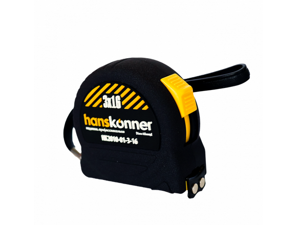 Рулетка HANSKONNER 3м*16мм, 2 стопа, противоударный корпус Soft touch, мощный магнит (6/144)