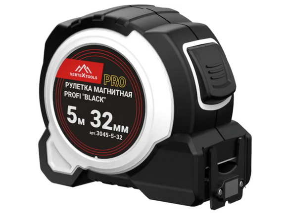 Рулетка VERTEX PROFI "BLACK" магнитная 5м х 32мм, НЕЙЛОН, зацеп с неодимовым магнитом (6/48)