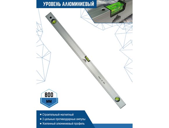 Алюминиевый уровень Vertextools 800мм 3033-800 применяется для оценки соответствия поверхностей вертикальной или горизонтальной плоскости, а также для измерения углового отклонения поверхности от горизонтали или вертикали.Данный инструмент оснащен тремя ампулами, что обеспечивает возможность проведения измерений в нескольких плоскостях.Уровень прост в использовании и неприхотлив в уходе. При правильном и аккуратном использовании долговечен.Незаменим при работе с металлическими поверхностями из-за встроенных в корпус магнитов.