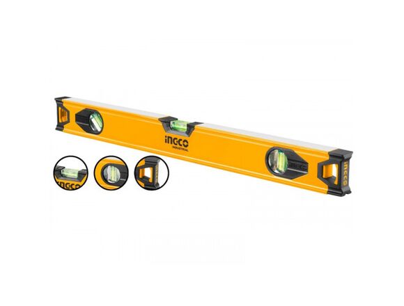 Уровень INGCO INDUSTRIAL V-образный 500мм 3 глазка, 0,5мм/м, АННОДИРОВАННЫЙ 1,5мм (5/20)