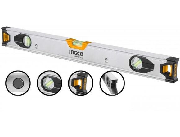 Уровень INGCO INDUSTRIAL МАГНИТНЫЙ (Al 1,5мм) 400мм, 3 глазка (5/20)