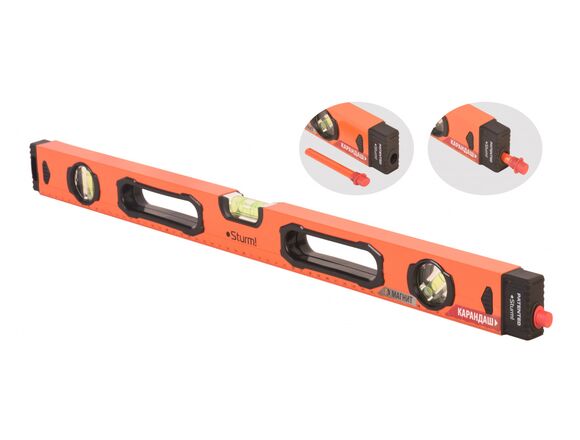 Уровень Sturm 600мм S 2015-09-600 может применяться для замера неровностей одновременно по горизонтали и вертикали, а так же под углом.