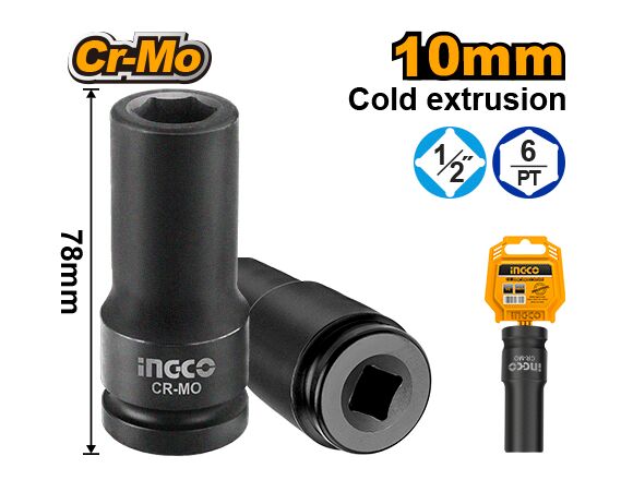 Головка торцевая ударная удлиненная INGCO INDUSTRIAL 1/2" 10мм (12/96)