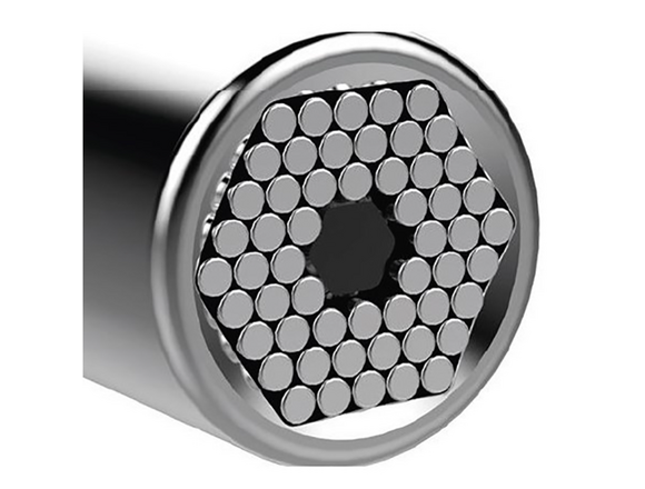 Головка торцевая универсальная 7–19 мм WORKPRO WP202517 мгновенно подстраивается под любой тип и размер соединительного крепежа, который нужно закрутить или раскрутить. Гнездо головки наполнено металлическими стрежнями, которые при первом же касании словно обтекают соединительный крепеж, принимая необходимую форму, это позволяет быстро справиться с любой задачей по ремонту.