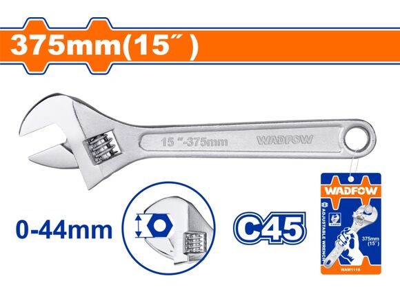 Ключ разводной WADFOW 375мм, 0-44 мм (1/16)