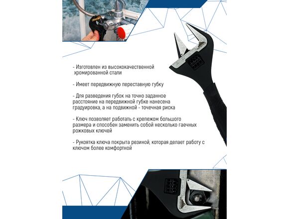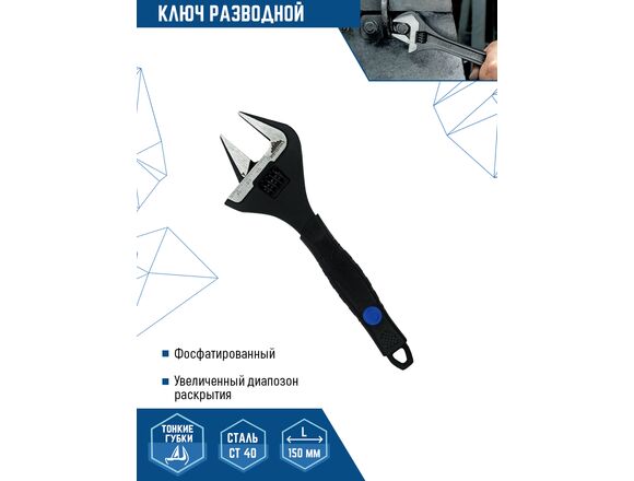 Ключ разводной VERTEX 150 мм,УСИЛЕННЫЕ ТОНКИЕ ГУБКИ обрезин. рукоятка (1/96)