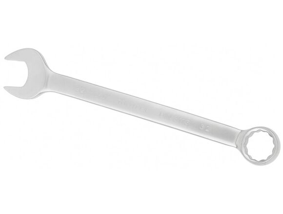 Рожковым зевом можно работать с крепежом, даже когда доступ к нему открыт только с одной стороны и нет возможности накинуть ключ на крепежный элемент. Двенадцатигранный кольцевой зев надежно захватывает крепеж, препятствуя срыву граней и даже в том случае, если его углы немного повреждены. При этом кольцевой зев выдерживает очень высокие нагрузки. Зев расположен под углом 15 градусов к плоскости ключа, для более комфортной работы.