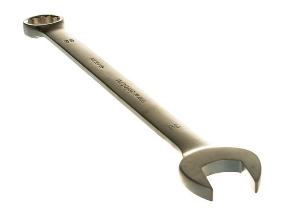 Комбинированный ключ 36мм Дело Техники 511036 - двусторонний ручной инструмент, сочетающий в своей конструкции рожковую и накидную головки. Кольцевая имеет двенадцатигранный рабочий профиль и максимально надежно обхватывает гайку или болт, препятствуя срыву граней крепежа.