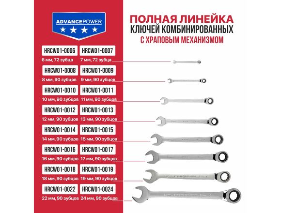 Ключ комбинированный трещоточный P.I.T. ADVANCE 15мм, 40CrV, 90
