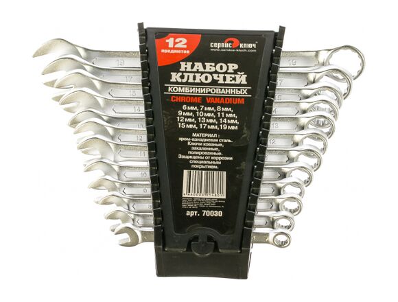 Набор ключей 12 предметов СЕРВИС КЛЮЧ PROFFI CR-V 70030 представляет собой комплект инструмента, при помощи которого можно без труда работать с типовыми размерами шестигранного крепежа.