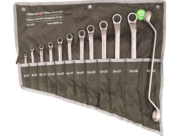 Набор ключей гнуто-накидных ДТ 12шт (6*7 - 30*32 мм), тетроновый планшет