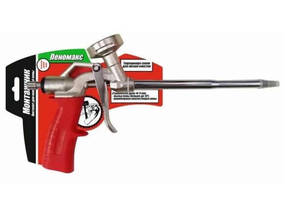 Пистолет для монтажной пены Монтажник Пеномакс 600007 используется при проведении монтажных и строительных работ с целью заполнения полостей, отверстий и трещин в материалах.