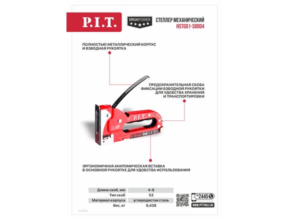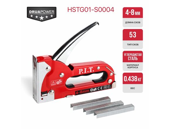 Степлер механический P.I.T. cерия DRUA скобы 4-8 мм, тип 53, 438г, металлический (6/36)