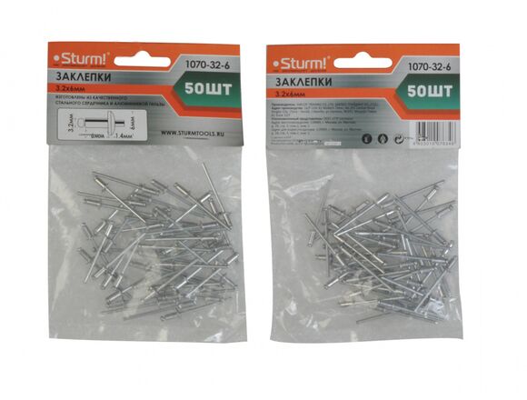 Заклепки алюминий/сталь Sturm 1070-32-6 предназначены для заклепочников. Применяются для соединения листовых материалов между собой. Устанавливаются в отверстие, после чего расклепываются со стороны стержня, образуя прочное соединение. Стержень изготовлен из стали, заклепка из алюминия.