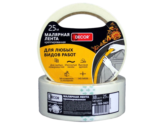 Лента малярная DECOR 19мм*50м, креппированная, 140мкм (1/135)