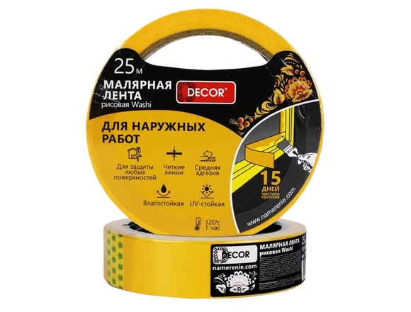 Лента малярная оранжевая DЕCOR 38мм*25м, для наружных работ (1/63)