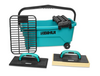 Отжимные ролики и решетка съемные, что очень удобно для очистки. Набор для мойки плитки оснащен двумя полипропиленовыми колесиками, которые обладают тормозным механизмом для предотвращения случайного перемещения кюветы. Максимальный объём кюветы составляет 19 л, полезный объём (до уровня отжимной р
