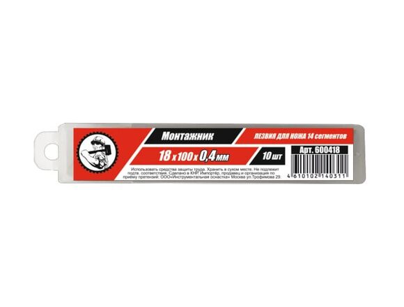 Лезвия сегментные МОНТАЖНИК 18мм (10шт) ТОЛЩИНА 0,4мм, 14 сегментов (20/20/300)