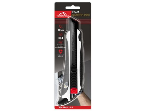 Нож с сегментным лезвием МАЛЯРНЫЙ VERTEXTOOLS PROFI SAFETY 18 мм, ЛЕЗВИЕ SK4