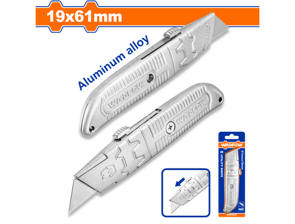 Нож с сегментным лезвием WADFOW 18мм + 3 лезвия, автозамок, УСИЛЕННЫЙ, металл.напр, БЛИСТЕР (1/144)