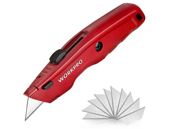 Строительный нож WORKPRO алюминиевый, с выдвижным трапециевидным лезвием, 3 лезвия WP213017 используется для резки различных материалов. Специальный механизм обеспечивает быструю смену лезвий. 3-х позиционное выдвижное лезвие выполнено из стали SK5, обладающей высокой прочностью и долговечностью. Выдвижной механизм ножа обеспечивает безопасность использования и транспортировки. Зажим для ремня служит для удобной носки ножа на ремне брюк. Корпус из алюминиевого сплава обладает стойкостью к износу, легким весом и эргономичной формой.