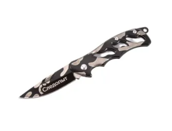 Нож туристический "СЛЕДОПЫТ", дл. клинка 57 мм, ручка и лезвие цвет чб камо/360/240/