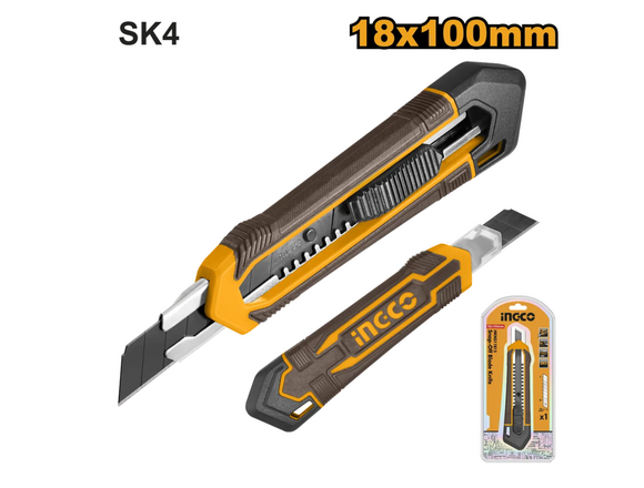 Канцелярский нож используется для разрезания бумаги, картона, напольных покрытий и других материалов. Корпус выполнен из ударопрочного ABS пластика с рифленой рукояткой специальной формы, что делает работу с ножом комфортной. Система фиксации лезвия Push-Lock позволяет одним движением отрегулировать длину лезвия и закрепить его положение. В комплекте одно лезвие из стали SK5 размеров 100х18 мм. Длительный срок службы ножа обеспечивает металлическая направляющая толщиной 0.8 мм.