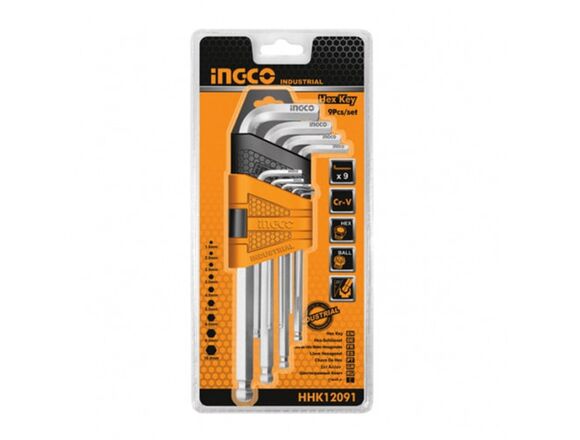 Набор шестигранников HEX INGCO INDUSTRIAL 9шт, длинные (6/48)