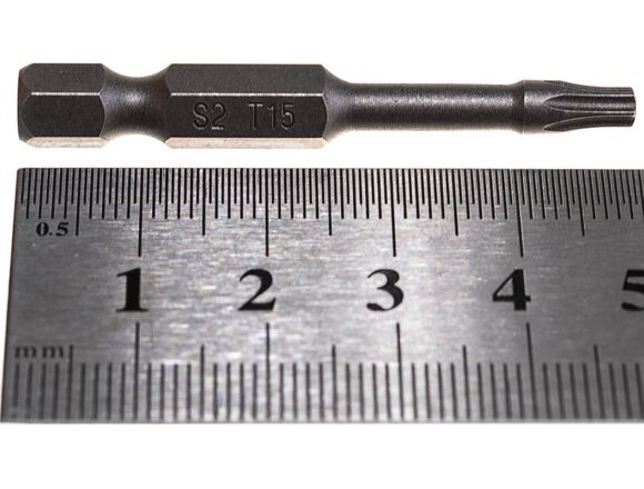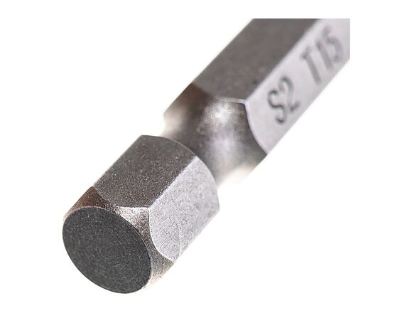 Изготовлена из стабильной стали марки S2, которая проходит все этапы закалки согласно стандарту AISI. Твёрдость после закалки до 64 HRC. Оснащена суженной шейкой, которая позволяет бите немного скручиваться и пружинить обратно, ликвидируя пики нагрузок, за счет чего продлевается срок службы. Все биты намагничены.
