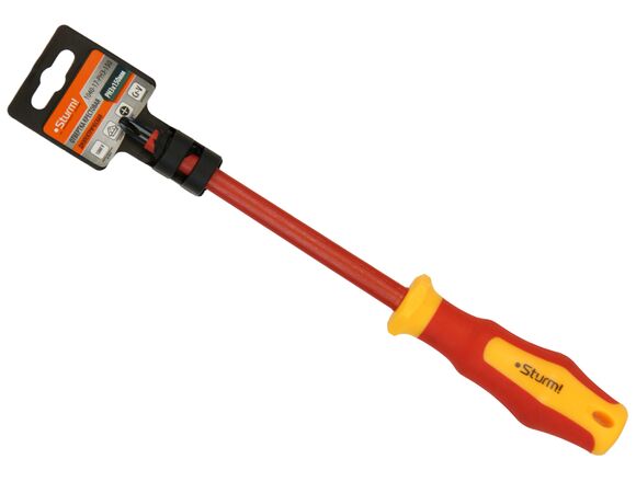 Крестовая отвертка Sturm 1040-17-PH3-150 ДИЭЛЕКТРИЧЕСКАЯ, эрго ручка, PH3х150мм, 1040-17-PH3-150 подходит для работы со сложным и прочным крепежом. Инструмент оснащен нестираемым наконечником, поэтому можно прикладывать больше усилий.