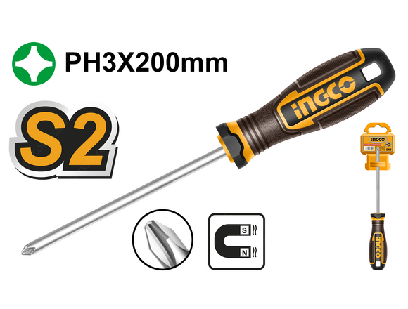 Отвертка крестовая INGCO INDUSTRIAL PH3*200мм NEW (12/144)