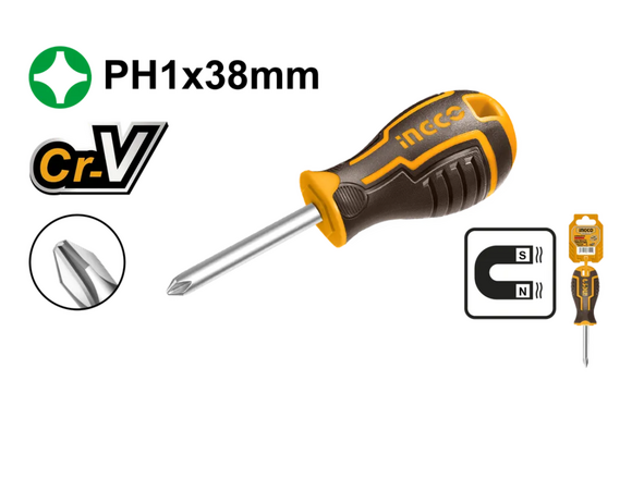 Отвертка крестовая INGCO PH1* 38мм, с подвесом (12/240)