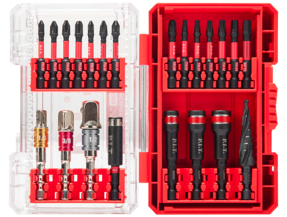 Набор бит УДАРНЫХ P.I.T. 22шт (биты + насадки + адаптера 1/4-3/8-1/2"), КЕЙС (1/24)