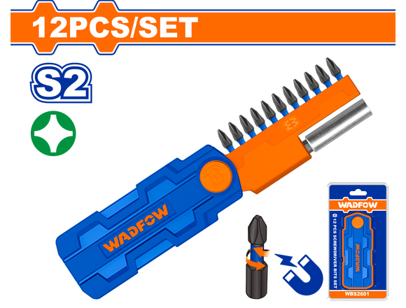 Набор бит ударных WADFOW PH2 с магнит держателем 12шт (1/100)