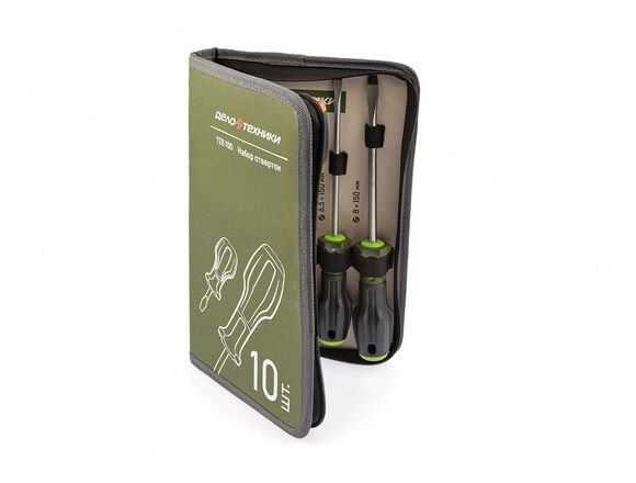 Набор отвёрток ДТ 10шт ТКАНЕВЫЙ КЕЙС (SL3/5/6,5/6,5/8 + PH0/1/2/2/3), ручки 3К