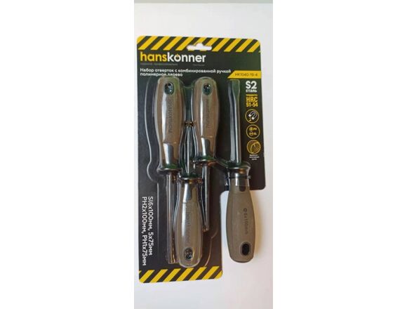 Набор отверток Hanskonner HK1040-19-4 используется для работ с крепежом. Жало отверток выполнено из качественной стали S2. Материал отличается высокой прочностью и долговечностью. Эргономичные древесно-полимерные рукоятки обеспечивают комфортную эксплуатацию.