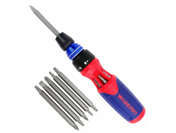 Отвертка с набором бит WORKPRO 12 в 1 (храповый механизм, быстрая загрузка) (1/8)
