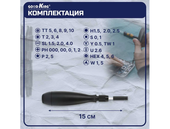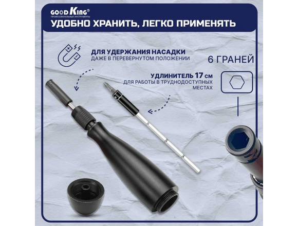 Отвертка с прецензионными битами GOODKING 30 в 1 (отвертка/биты/удлинитель), цельнометалл