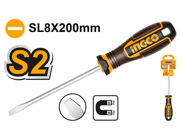 Отвертка шлицевая INGCO INDUSTRIAL SL8*200мм NEW (12/144)