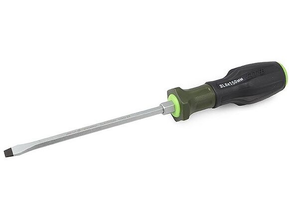 Шлицевая отвертка Дело Техники усиленная, с трехкомпонентной рукояткой 6×150 мм 741066 применяется для работ с резьбовыми соединениями при различных монтажных и ремонтных работах. Инструмент может использоваться в бытовой и профессиональной сфере.