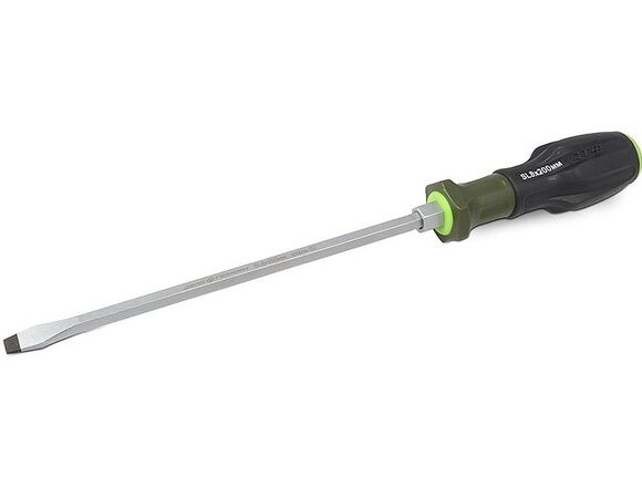 Шлицевая отвертка Дело Техники усиленная, с трехкомпонентной рукояткой 8×200 мм 741088 применяется для работ с резьбовыми соединениями при различных монтажных и ремонтных работах. Инструмент может использоваться в бытовой и профессиональной сфере.