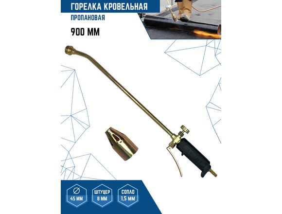 Кровельная пропановая горелка VERTEXTOOLS 90 см, латунь 0841-90 ручная, газовоздушная, предназначена для нагрева изделий и заготовок из черных и цветных металлов и их пайки, оплавления битумных рулонных материалов, сушки литейных форм, обжига старой краски, ремонта кабельных линий и других работ.